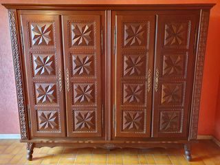 CHAMBRE A COUCHER EN CHENE MASSIF STYLE LOUIS XIII (Croix de Malte et Pointes de diamant) MEUBLES POUVANT ETRE VENDUS SEPAREMMENT- ARMOIRE/PENDERIE 4 PORTES :Un côté penderie et mi