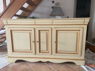 Magnifique buffet provençal en bois massif de très bonne fabrication. 3 portes, 3 tiroirs qui disparaissent dans la moulure du plateau, grande capacité de rangement Prix cassé