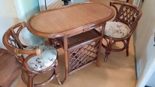 vends 2 chaises en rotin pieds en bois prix intéressant 40 euro les 2 peut servir pour îlot jardin bar ect.... bonne etat