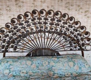 tête de lit en rotin travaillé façon bambou. structure saine et ligatures bien en place. Défaut de ligature sur une bague voir dernière photo La tête de lit a été dépoussiérer
