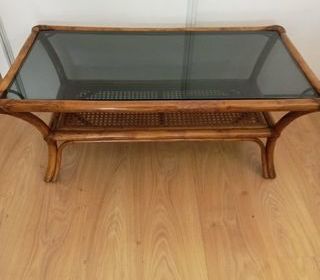Petite table salon en rotin. 50cm plateau carré sur 32cm de hauteur.