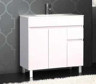 VENDS MEUBLE DE SALLE DE BAIN AVEC VASQUE EN PORCELAINE 3 portes et un tiroir amorti sur 4 pieds metalliques, LE MEUBLE EST NEUF , DANS SON EMBALLAGE CAR LES TRAVAUX DE LA