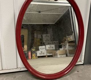 Miroir en fer forgé rouge vertical. Glace en excellent état; cadre à rafraichir. Selon besoin à poser soit dans une chambre, une salle de bains ou dans une entrée. Dimensions: h