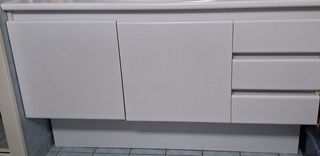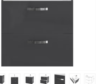 Meubles de salle de bain neufs, encore plastifiés. Erreur de dimension, non adaptés à ma mini salle de bain. 1- Meuble sous vasque 2 tiroirs gris taupe ( à suspendre) : L. 60 x