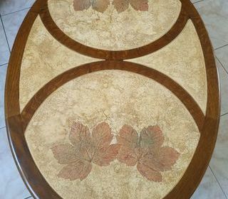 Vends table basse de salon en bois 96,50 cm x 13,50 cm x 41 cm avec un tiroir et une plaque en marbre