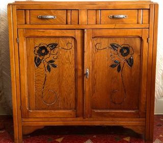 Meuble 2 portes.2 tiroirs tout en bois solide ,vernis Peut etre repeint sans problemes pour une chambre peut supporter une vasque dans une salle de bain.un peu de courage et vous