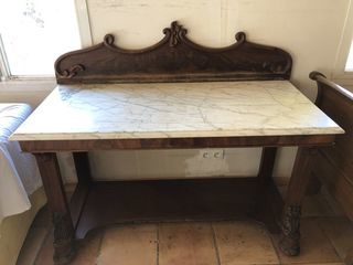 Ancienne console en bois et marbre