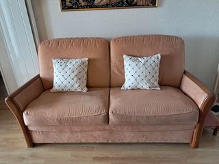 Canapé convertible bois et tissu couleur vieux rose. Couchage 190 x 140, matelas confortable qui a très peu servi. Très facile à ouvrir en lit et à refermer. A venir chercher sur p