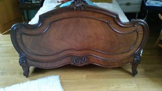 Belle chambre à coucher avec literie 160x200 sommier à lattes matelas latex Pirelli, en bois de rose tête de lit cannage, commode 120x53x82cm, chevet 58x37x40. Mobilier de France t