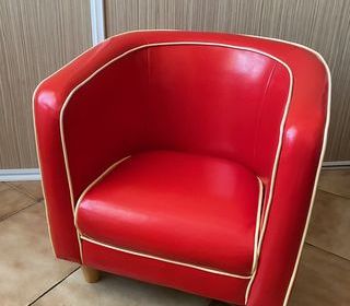 fauteuil enfant assise en mousse épaisse aux pieds en bois. Il est très stable. Hauteur 52 cm Largeur 48 cm Profondeur 44 cm Assise : largeur 33.5 cm, profondeur 32 cm En
