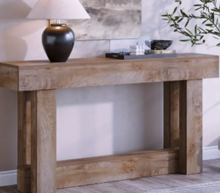 ? État : Neuf ? Style : Naturel / Contemporain / Minimaliste Console au design massif et épuré, pensée pour ceux qui aiment la présence du bois brut et la simplicité des lignes