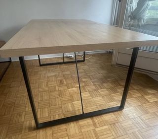 Table de qualité avec plateau épais en verre et pieds en bois Dimensions 140x90 Hauteur 75 cm
