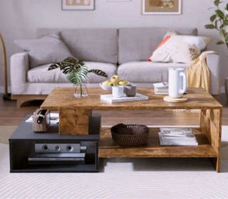 ? État : Neuf ? Style : Contemporain / Naturel / Japandi Table basse au design tout simplement magnifique. Son piètement en demi-lune crée un mouvement doux et fluide, comme u