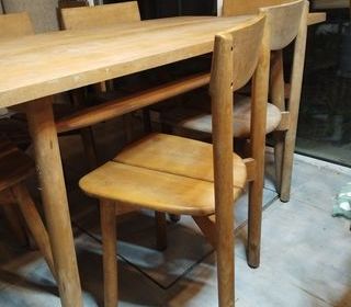 Je vend un ensemble de chaises et table modèle grain de café du désigner Pierre Gautier delaye Il y a 10 chaises lz table fait 1,50x80 en hêtre A débattre dans la limite du rai