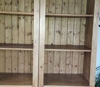 Bibliothèque en pin 2 éléments deux portes et deux étagères Chaque élément mesure 0,65 de largeur, 2 m 40 de hauteur et 0,49 de profondeur En excellent état provenance Antic d