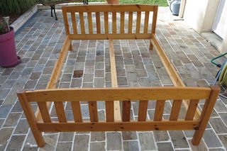 Lit en pin 2 places 140x190 ? Solide et confortable À vendre lit en pin massif pour 2 personnes, dimensions 140x190 cm. Ce lit allie robustesse et design naturel, parfait pour
