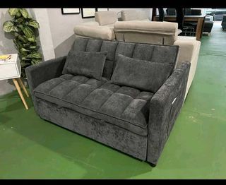 Canapé convertible 2 places au design moderne, revêtu d'un tissu doux effet velours gris foncé. Il se transforme facilement en lit grà¢ce à son système d'ouverture pratique, offra