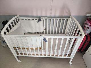lit parapluie bleu et blanc déjà utilisé mais son matelas est neuf