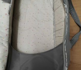 Petit lit de bébé, ancien et original, de style rustique, en bois clair tourné . Bon état. Dimensions : Longueur 108 cm, largeur 63cm, hauteur 76cm. Intérieur : 100 x 55 cm. Remis