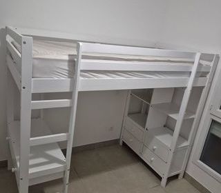 Dimensions : Hauteur : 171 cm Largeur : 98 cm Longueur : 205 cm Il comprend : -Un lit en hauteur (matelas non inclus) -Un bureau fonctionnel avec placard, tablette et ti