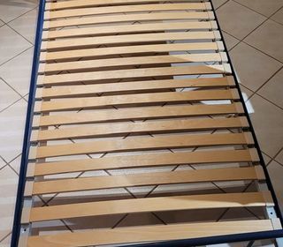 Lit enfant 90x190- Métal bleu avec motifs dauphins. Sommier à lattes trés bon état et matelas 90x190 même état. Facile à monter. Pas de livraison. A enlever sur place
