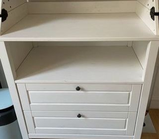 Table a langer , repliable qui fais commode pour gain de place, avec 2 tiroirs bon état , juste de l'usure sur le devant voir les photos dimensions : Largeur 78 , Longueur fermer