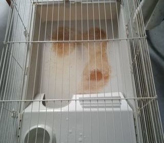 la cage n'est pas neuve mais propre, lapin y était à l'aise
