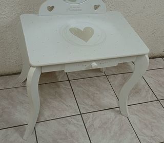 coiffeuse enfant en bois laqué je suis une princesse, L70cm X P 50cm, dimensions tablette 60cm X 40cm, hauteur 55cm, hauteur totale 92cm, pas de tabouret, remise en main propre