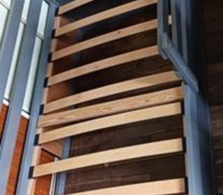 Vend lit enfant de 4 à 10 ans . Bois gris 2 Placard coulissant sur le coté bas du lit pour rangement. Le demi rebord peux être démonté pour laisser le lit ouvert. Très bonne ét