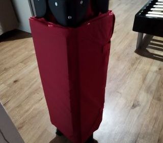 lit parapluie rouge avec étui de rangement et matelas, a servi que 5 fois