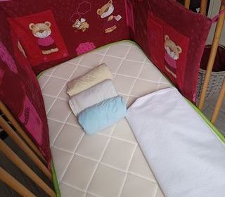 Vends un lit à barreau en bois, réglable sur 4 niveaux. Sommier à lattes. Lit sur roulettes réglables. je vends également le matelas (servi 3 fois pour mon petit fils) en parfait é