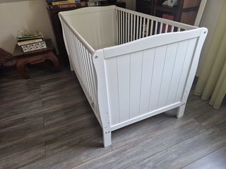 Lit+cage+enfant+en+bois+blanc+ Manque+2+crochets++d+origine+ Livré+avec+deux+crochets+faits+maison+ Pas+d+envoi
