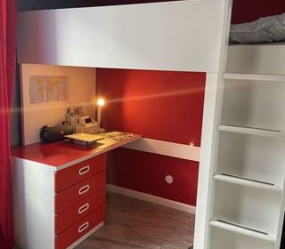 Vends lit superposé avec : Un bureau avec 4 tiroirs très profonds Un lit dimensions : 2 mètres x 0,99 cm Une penderie 4 casiers sur le côté de la penderie Idéale pour l