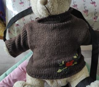 Sac à dos neuf, Nounours. Hauteur 40 cm. Fermeture zip au dos. Pull tricot non déhoussable
