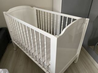 Vends lit bébé blanc + matelas propre Bon état Prix non négociable Pas de livraison À venir chercher sur place sur place