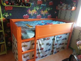 Vend lit mezzanine en bon état général (peut être un petit coup de peinture !!!). Le couchage fait 209 cm *101.5 cm de large. La hauteur totale du lit est de 176 cm. Le couchag