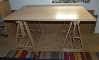 Deux Tréteaux D'Architecte Bois Naturel très bon état Plateau effet chêne 120 x 80 cm