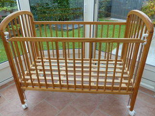 Lit en bois bébé a barreaux Avec sommier et matelas En très bon état