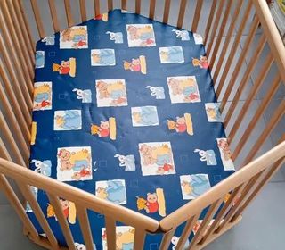 Berceau Rotin provenant de chez AUBERT. Nacelle démontable en deux parties par 2 écrous papillons. 3 arceaux amovibles, rabattables. Tissus lavable. La nacelle fait extérieurement