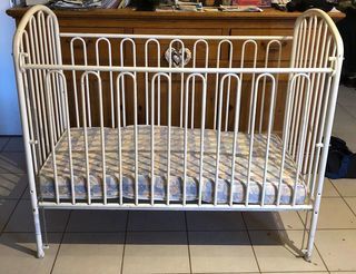 Vds lit enfant 1 place en forme de cage de foot en métal blanc avec matelas - excellent état