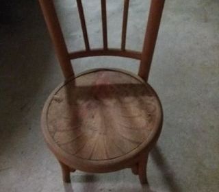 Petite chaise en bois pour enfants, bon état, hauteur du dossier : 52 cm, assise ronde de diamètre 32 cm. Vous pouvez laisser un message, en cas d'absence.