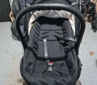 Vide garage vend poussette tout terrain sport pour de belles balades en forêt ou à la campagne La poussette est fournie avec le cosy , la nacelle, pare pluie , les roues sont fix