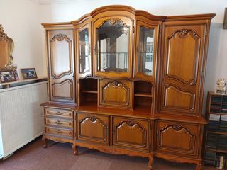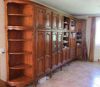 Meuble bibliothèque merisier travail artisanal.Elements adaptablessur divers angles penderie, secrétaire,etc très grand espace livres et rangement divers.