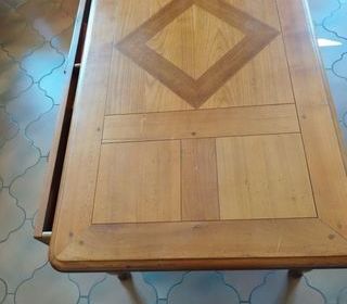 vends salle à manger comprenant une table longueur 1 m40 largeur 1 m 2 rallonges 50 cm 6 chaises un buffet largeur 55 cm longueur 2 m10 hauteur 1 m en merisier