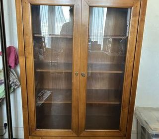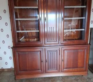 Urgent, cause déménagement, à vendre bibliothèque style Louis Philippe en merisier massif ; 3 portes et haut démontable. Très bon état