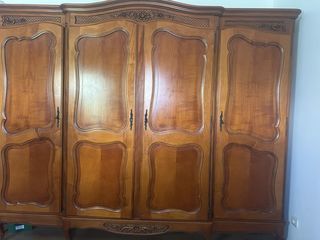 grande armoire en merisier. 3 portes. 1 avec étagères, les 2 autres en penderie aménageable en étagères ( planche disponible)