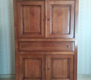 vends très belle armoire + 2 chevets assortis en merisier massif 1 armoire 3 portes largeur 185cm, hauteur 197cm, profondeur 60cm portes gauche et milieu = penderie