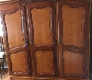 Vends chambre à coucher Lit, armoire, 2 chevets + sommier en merisier style Régence 500 euros l'ensemble