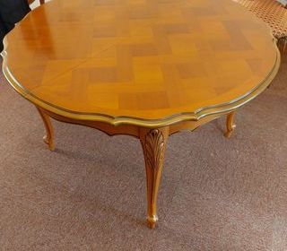 Vends TABLE SALON MERISIER MASSIF avec dessus verre biseauté, 2 tiroirs (ouverture des deux côtés) Longueur 1.50m largeur 0.54m hauteur 0.45m. EXCELLENT ETAT . A voir et à retirer