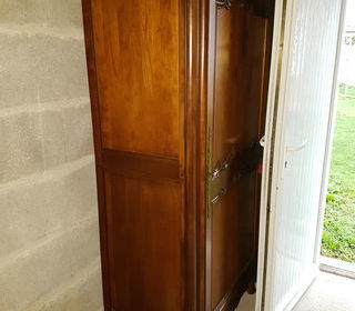 ARMOIRE ANCIENNE MERISIER ET LOUPE D'ORME. Toute chevillée à l'ancienne. Démontable Petit prix 150€ . À retirer sur place Pas de paiement wero ou paypal H : 225 / L : 140 / P